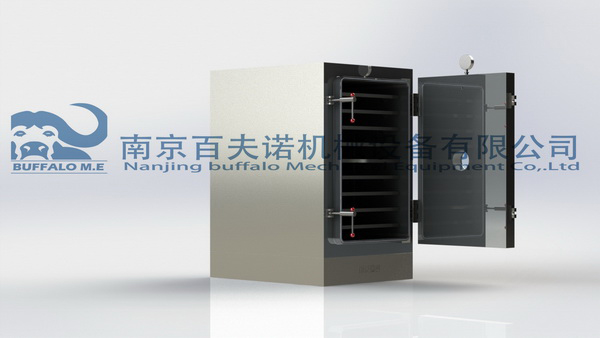 凍干機(jī)板層結(jié)構(gòu),平整度高,溫度均勻。平板換熱器內(nèi)部通入循環(huán)熱水。料盤與換熱器表面貼合,通過(guò)傳導(dǎo)加熱,提高了干燥效率。